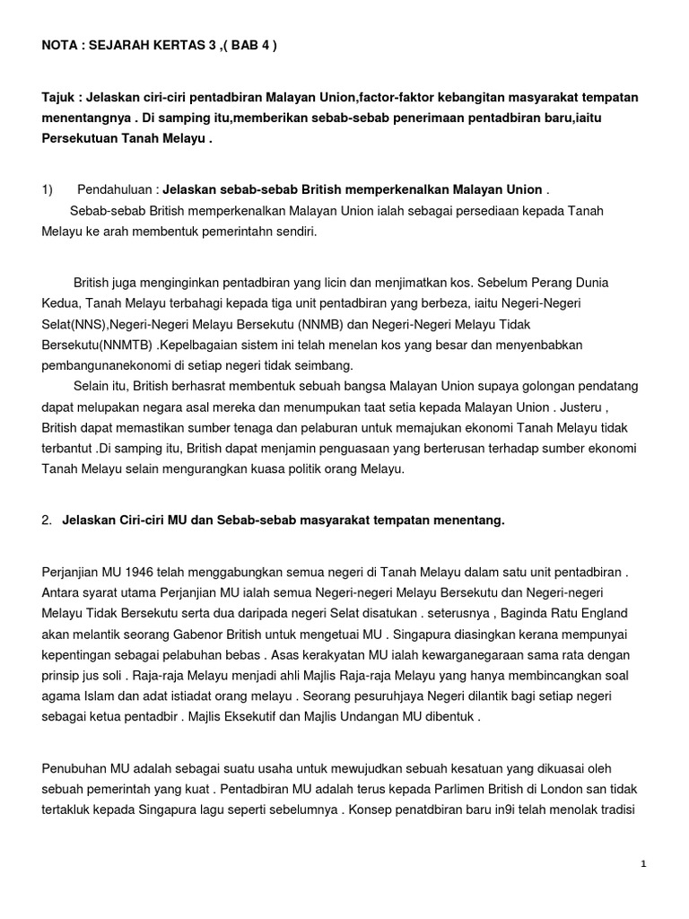 Doc Bab 2 Malayan Union Dan Persekutuan Tanah Melayu Nazhif Wan Yusoff Academia Edu