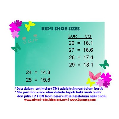 Shoes Carta Saiz Kasut Kanak Kanak Ukur Tapak Kaki Anak Guna Pembaris Pita Pengukur Dalam Cm Bagi Memastikan Keselesaan Anak Anda Sila Tambahkan 1 Cm Kepada Saiz Asal Tapak Kaki Anak Anda 27