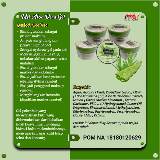Msi Aloe Vera Gel Aloevera Gel Msi Shopee Indonesia