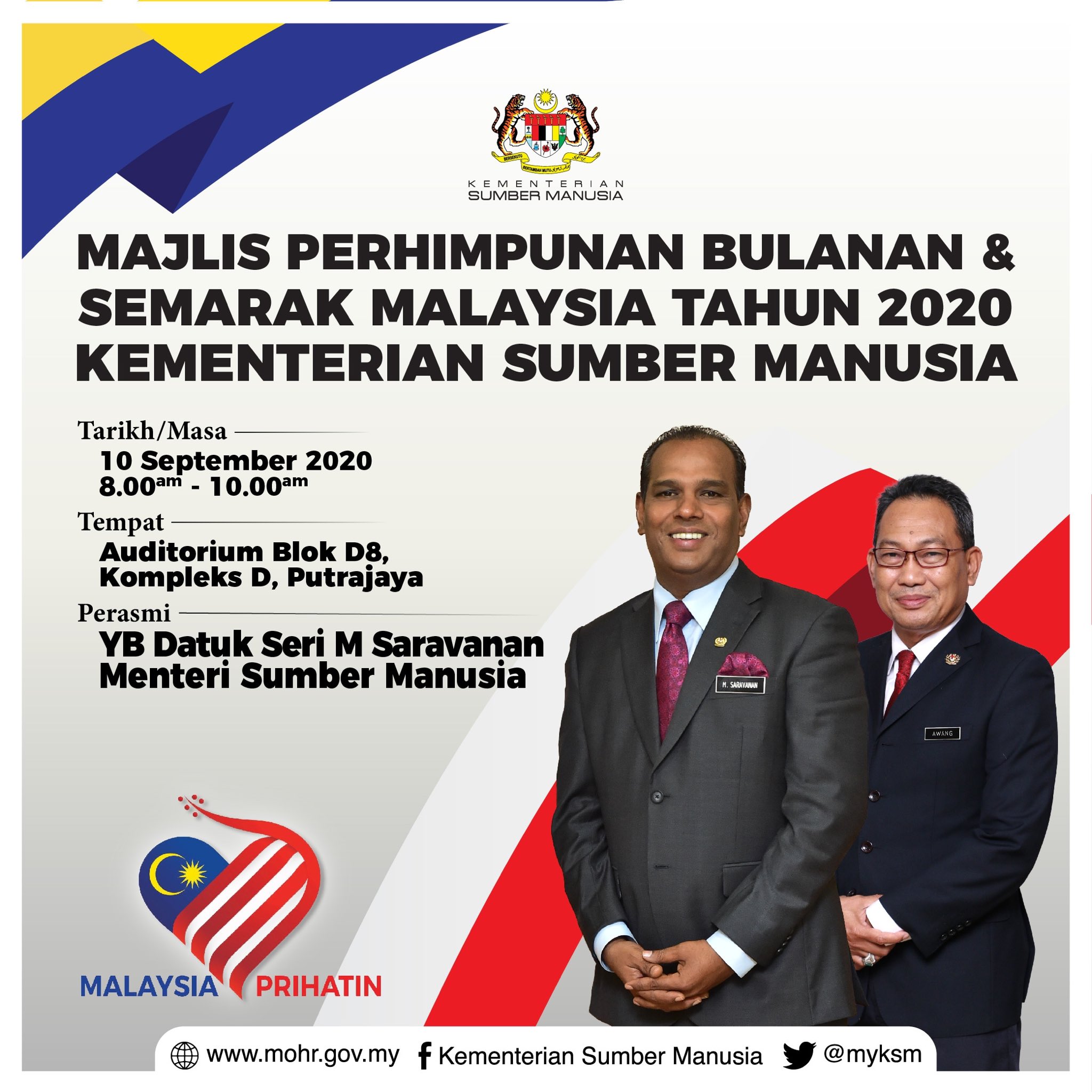 Kem Sumber Manusia On Twitter Majlis Perhimpunan Bulanan Semarak Malaysia Tahun 2020 Kementerian Sumber Manusia Akan Diadakan Pada 10 September 2020 Khamis Bermula Jam 8 00 Pagi Di Auditorium Blok D8 Putrajaya