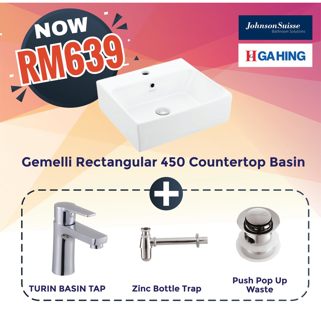 Johnson Suisse Gemelli Rectangular Countertop Basin Sinki Tandas Kepala Paip Bilik Air Pili Air Ga Hing Gahing Shopee Malaysia