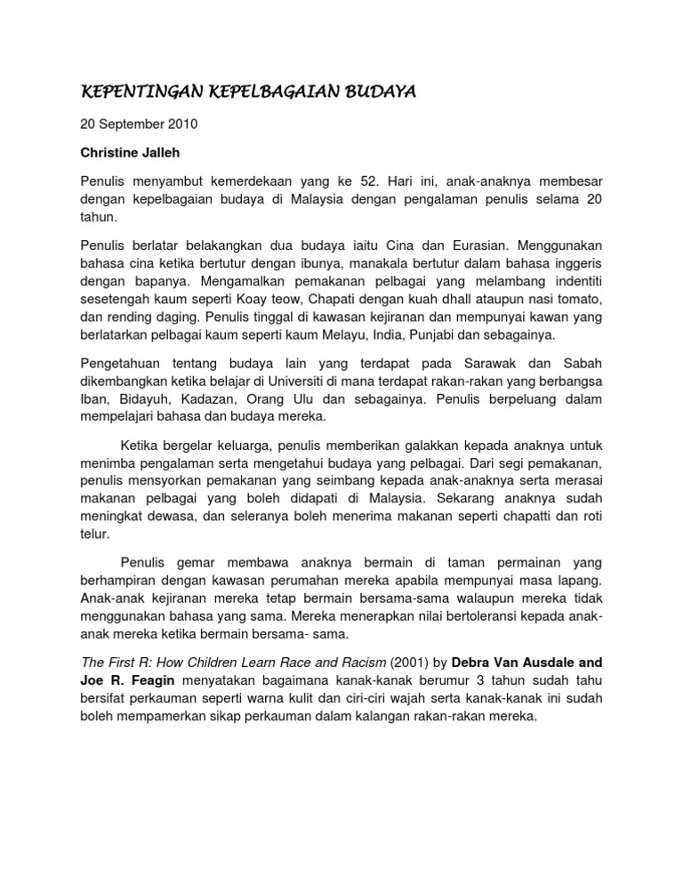 Contoh Karangan Kepentingan Perpaduan Kaum Di Malaysia