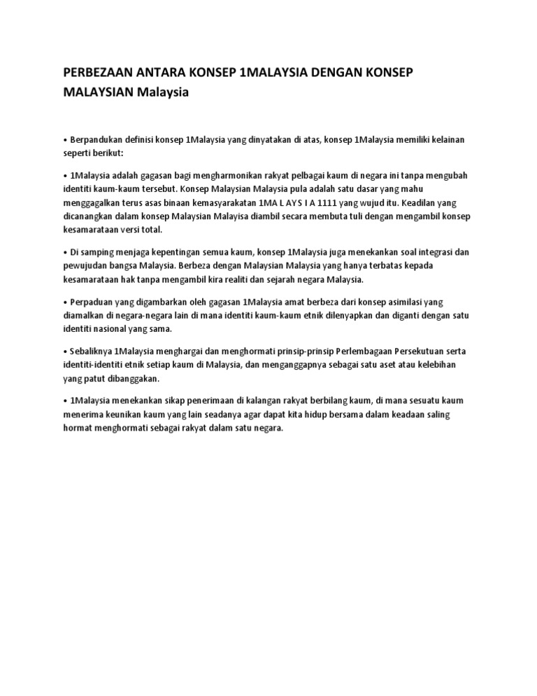 Perbezaan Antara Konsep 1malaysia Dengan Konsep Malaysian Malaysia Docx