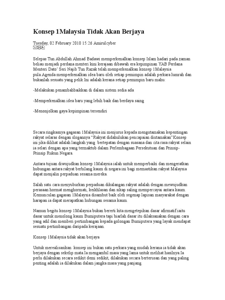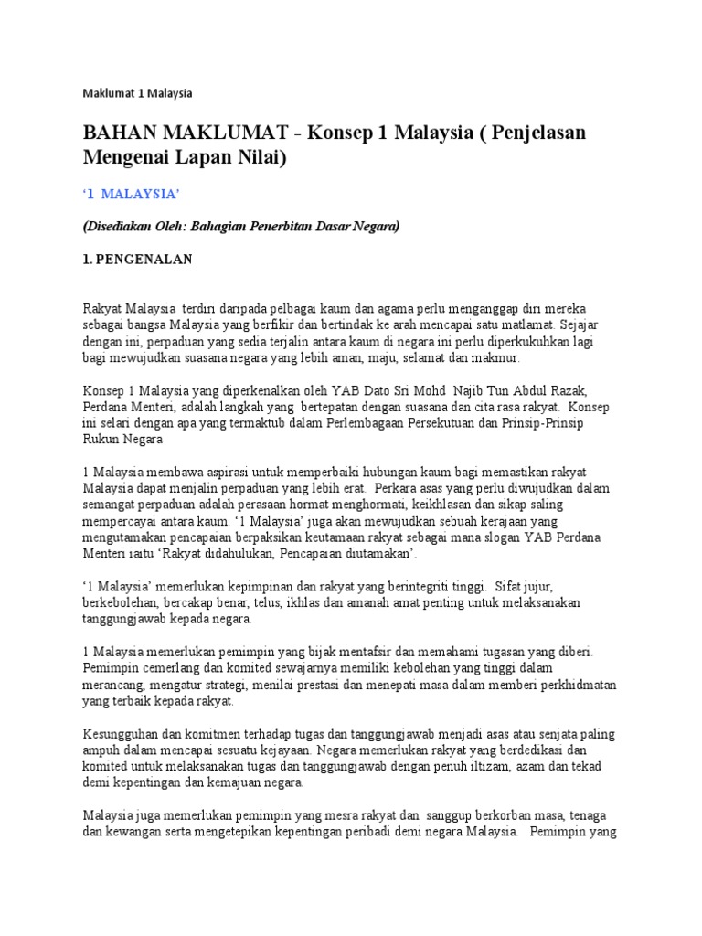 Essay Konsep 1 Malaysia Gagasan Xhcbqt Nasantada Info
