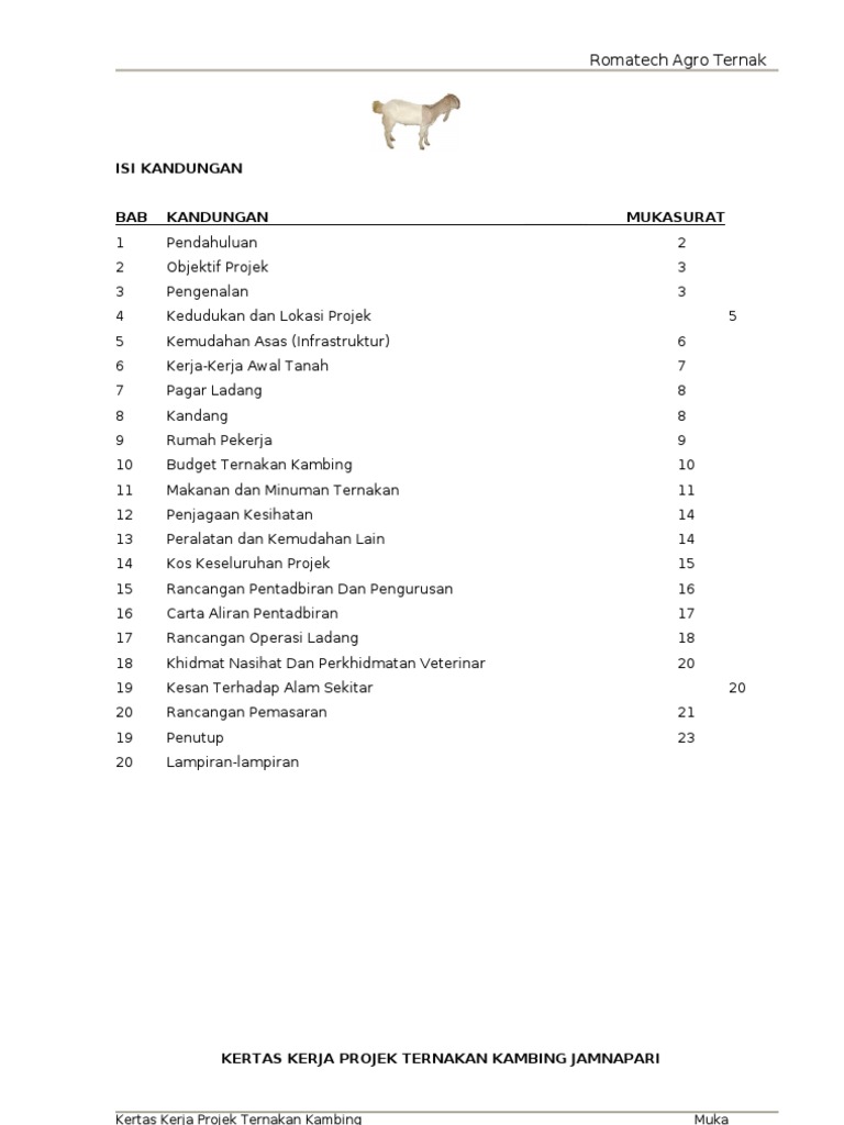 Contoh Kertas Kerja Projek Ternakan Kambing