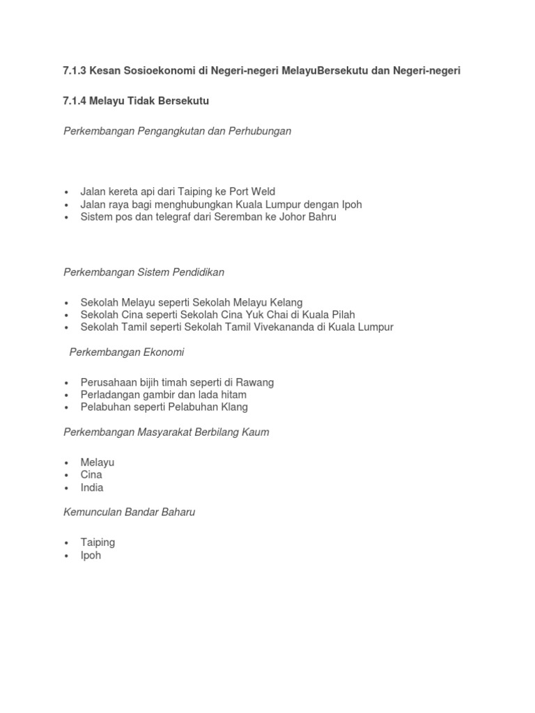 Kesan Sosioekonomi Negeri Negeri Melayu Tidak Bersekutu