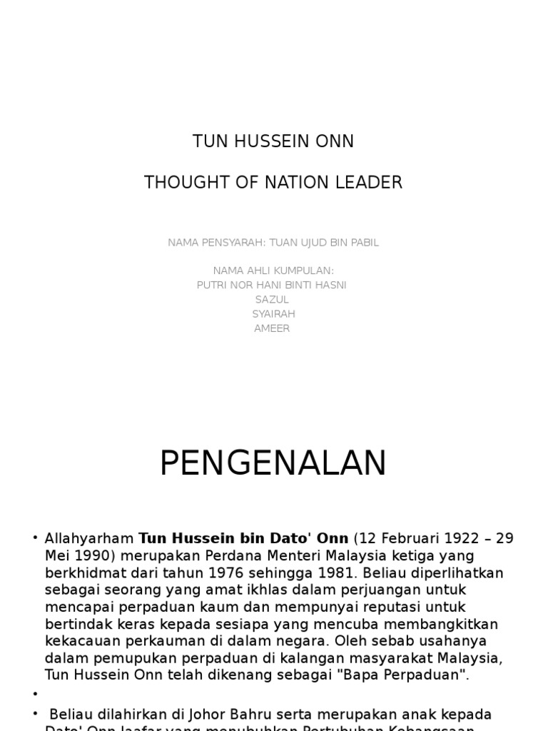 Tun Hussein Onn Hani Pptx