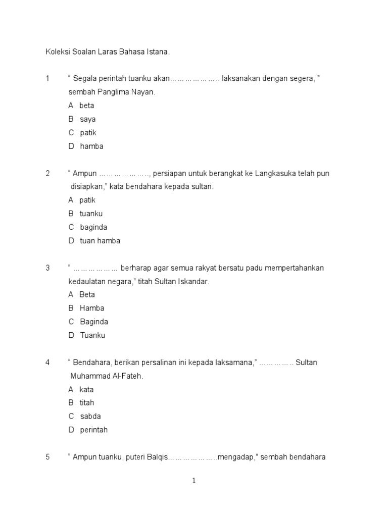 Contoh Soalan Bahasa Istana Pt3 Kuora S