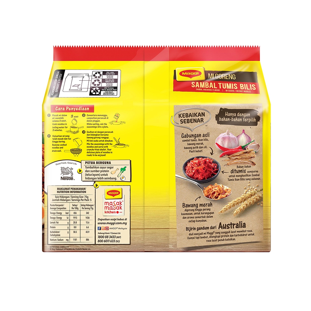 Maggi Mi Goreng Instant Noodles Sambal Tumis Bilis Cili Ala Kampung 5 Packs X 79g Shopee Malaysia