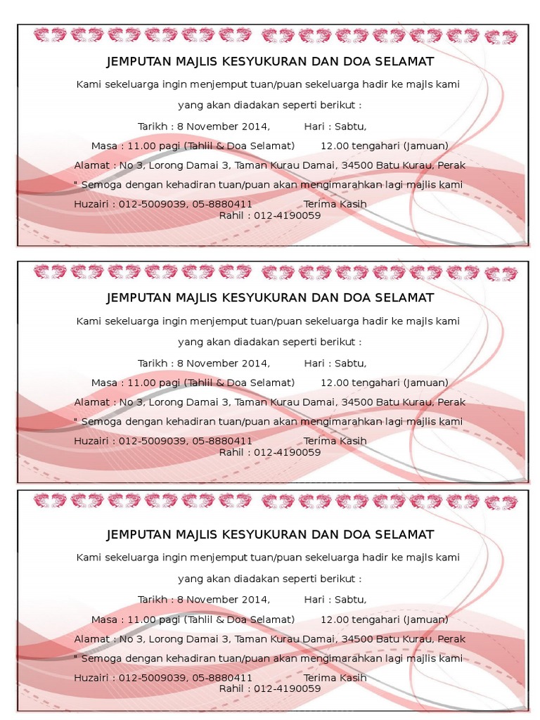 Jemputan Majlis Kesyukuran Dan Doa Selamat Doc