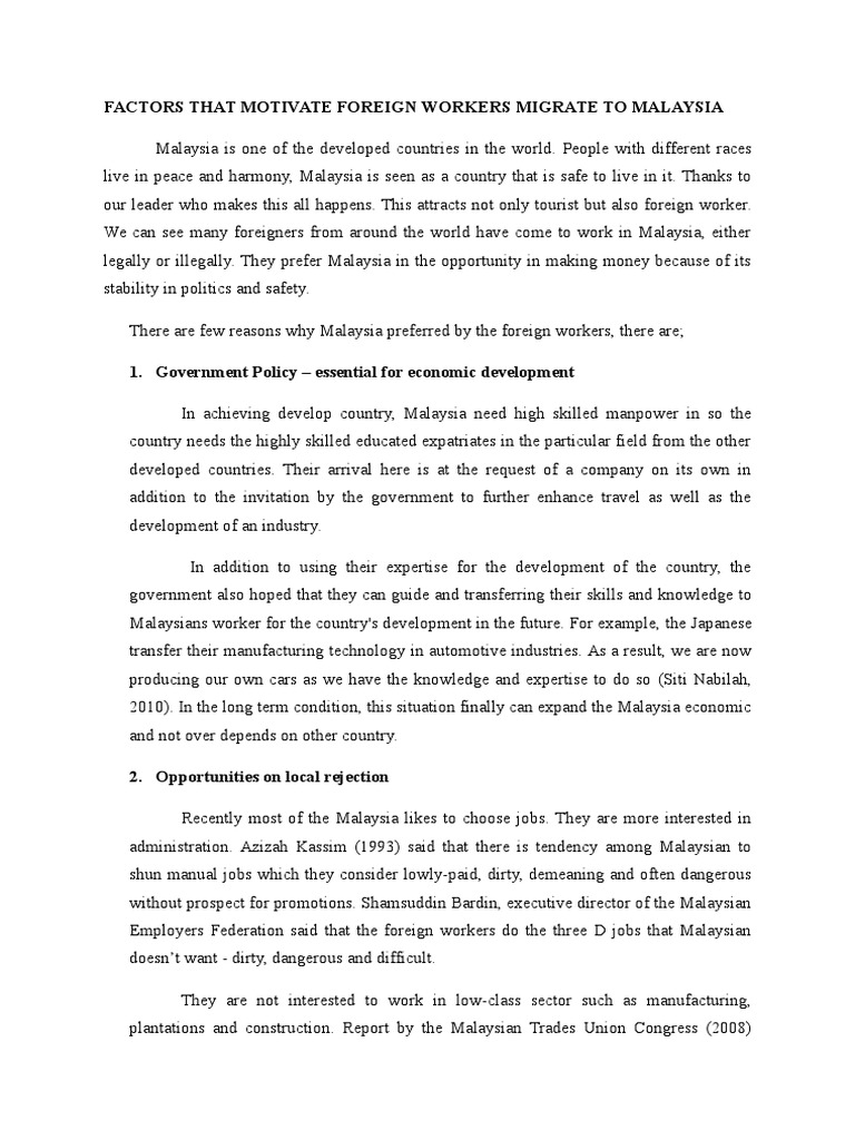 Factors That Motivate Foreign Workers Migrate To Malaysia Foreign Worker Employment