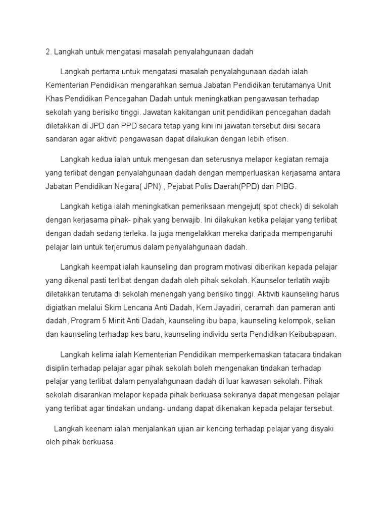 Penyalahgunaan Dadah Langkah Langkah Mengatasi Masalah Penyalahgunaan Dadah